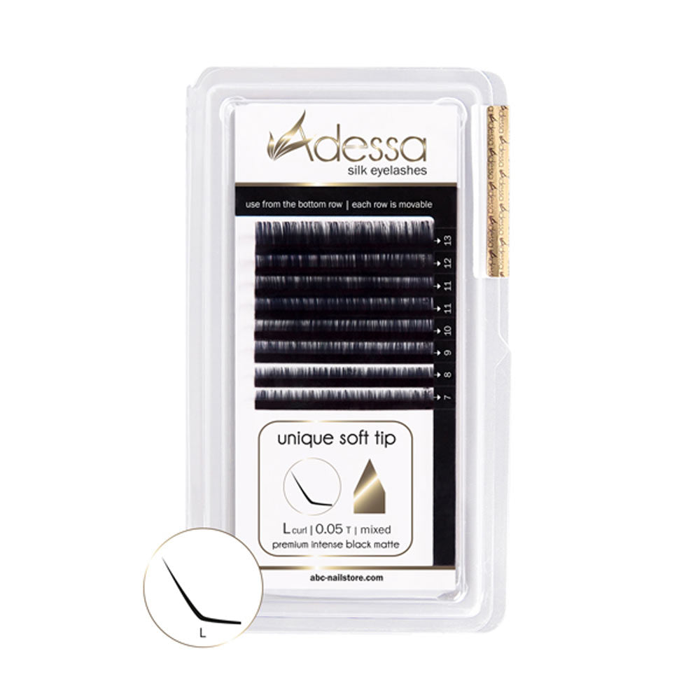 L-Curl, Stärke 0,05, mixed, 7-13mm Adessa Silk Lashes premium intense black matte Art.10024-08-05